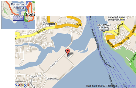 From the Gosport Ferry Pontoon turn left and follow the sea wall to Haslar