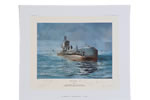 printes of the S-Class type HMS Sceptre slipping her moorings in